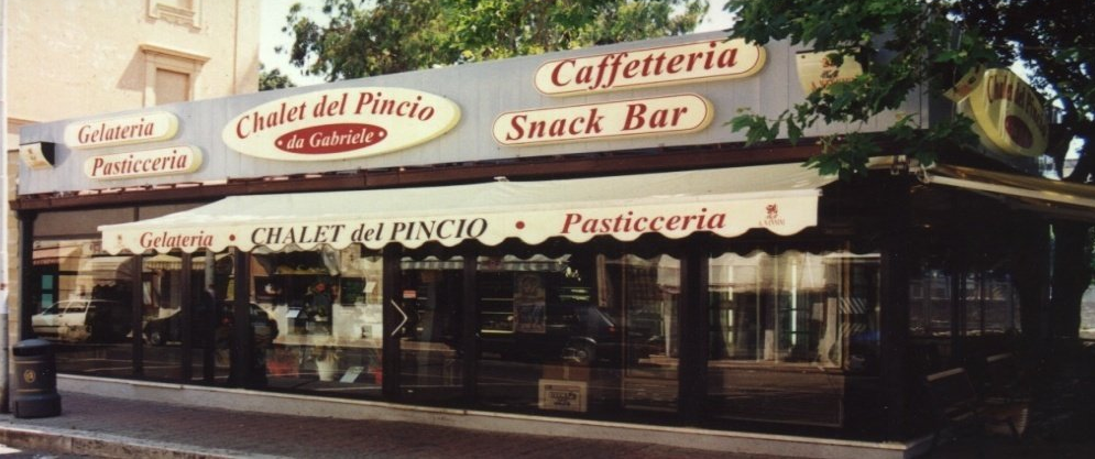 Chalet del Pincio è una gelateria in cui è possibile trovare tantissime varietà di gelati, dai 36 ai 54 gusti a seconda della stagione, gelato senza glutine, gelato senza lattosio, gelato senza zucchero, granite di frutta senza glutine e per accontentare i nostri amici a quattro zampe abbiamo anche una specialità di gelato solo per loro, chiamato Fuffy. Tutti i nostri prodotti creati artigianalmente seguendo sempre le nostre antiche ricette.